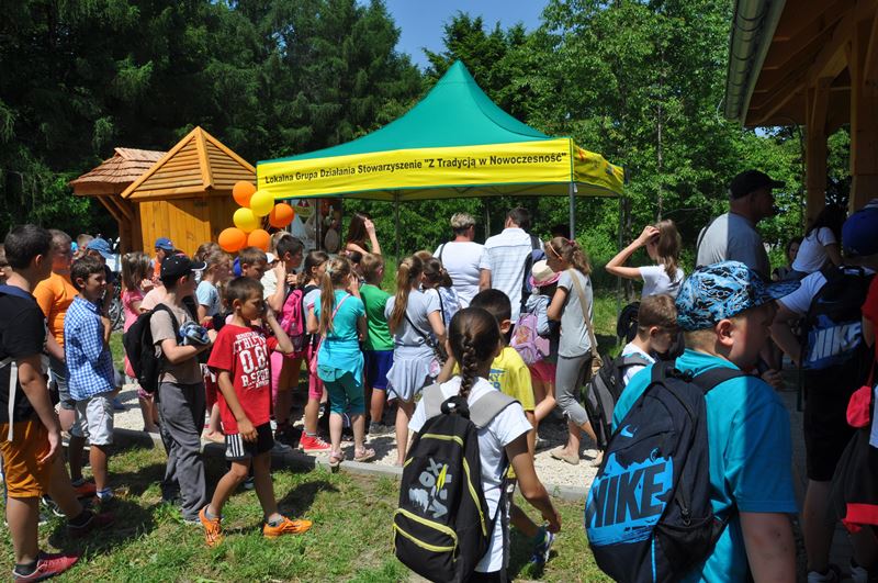 z wykorzystaniem nowych obiektów turystyczno – rekreacyjnych zrealizowanych w ramach LSR. W rajdzie pieszym ścieżką dydaktyczno – przyrodniczą „Wąwóz Lelos” udział wzięły zróżnicowane grupy wiekowe: dzieci , młodzież oraz seniorzy. Dla uczestników zaplanowano gry i zabawy integracyjne oraz konkursy z nagrodami.